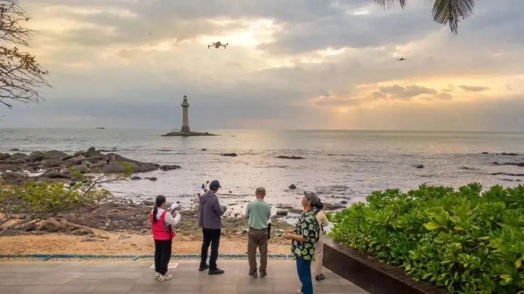 参加此次采风活动摄影家们,满怀激情用镜头抓拍和捕捉大小洞天旅游区最美的自然风光与人文景观:椰影婆娑的海边,夕阳西下带来了光影盛宴,蜿蜓曲折的滩涂礁石,闪烁着迷人的金色光芒;在落日余晖中,海边灯塔的剪影显得格外优雅,它默默地凝视着无尽的海洋,为归航的船只燃起希望之光……这些美景都成为摄影家们拍摄创作的最佳题材。采风现场,一些摄影家还运用现代无人机航拍设备,高空俯拍景区山、海、石、林的美景画面,创作了不少风光佳作。