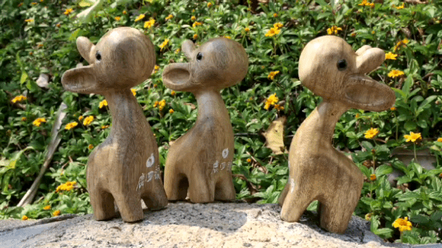 1.国家级非物质文化遗产剑川木雕给予香樟木制纪念品鹿木偶三只。